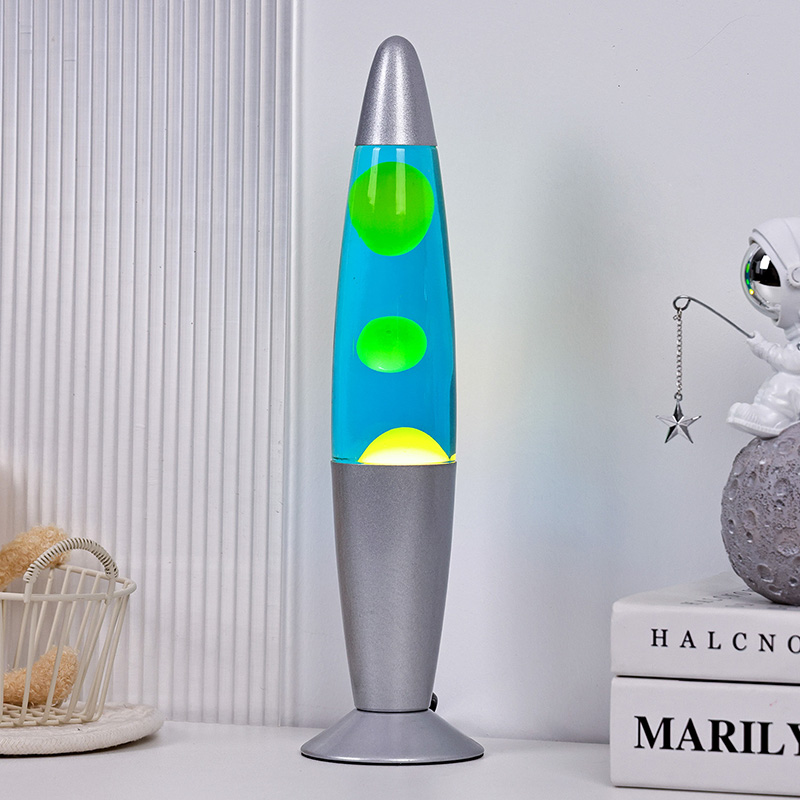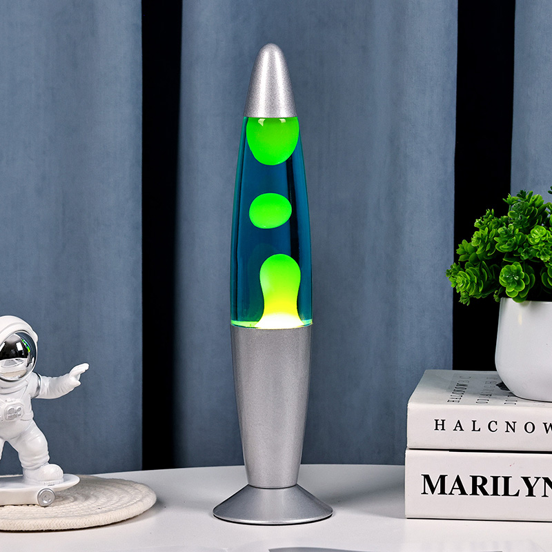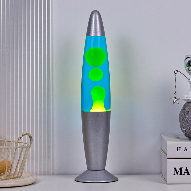 13 tommer blå original lavalampe, men et uttrykk for en livsstil. På slutten av en travel dag, slå den på og se den grønne vokskulen sakte flyte i den blå væsken, som om tiden selv har gått ned. I dette øyeblikket sitter verden igjen med noe annet enn ro og skjønnhet.
