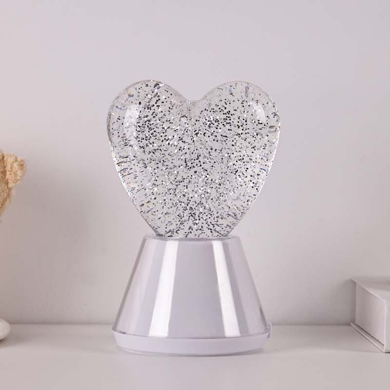 Fargeskiftende flytende glitter nattlys med hjerteskjerm. har en utsøkt glasskule fylt med en mystisk væske, der skimrende paljetter flyter. På mirakuløst vis, fargeskiftende flytende glitter nattlys med hjerteskygge som om du danser i en magisk verden.