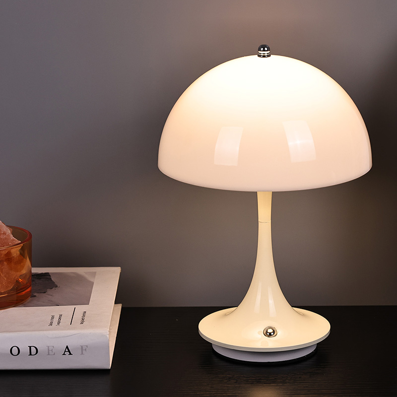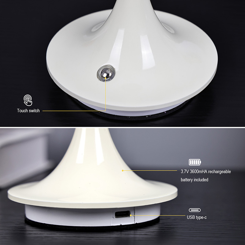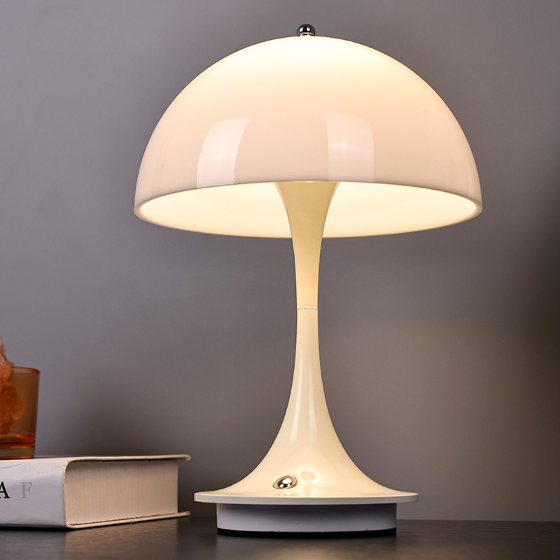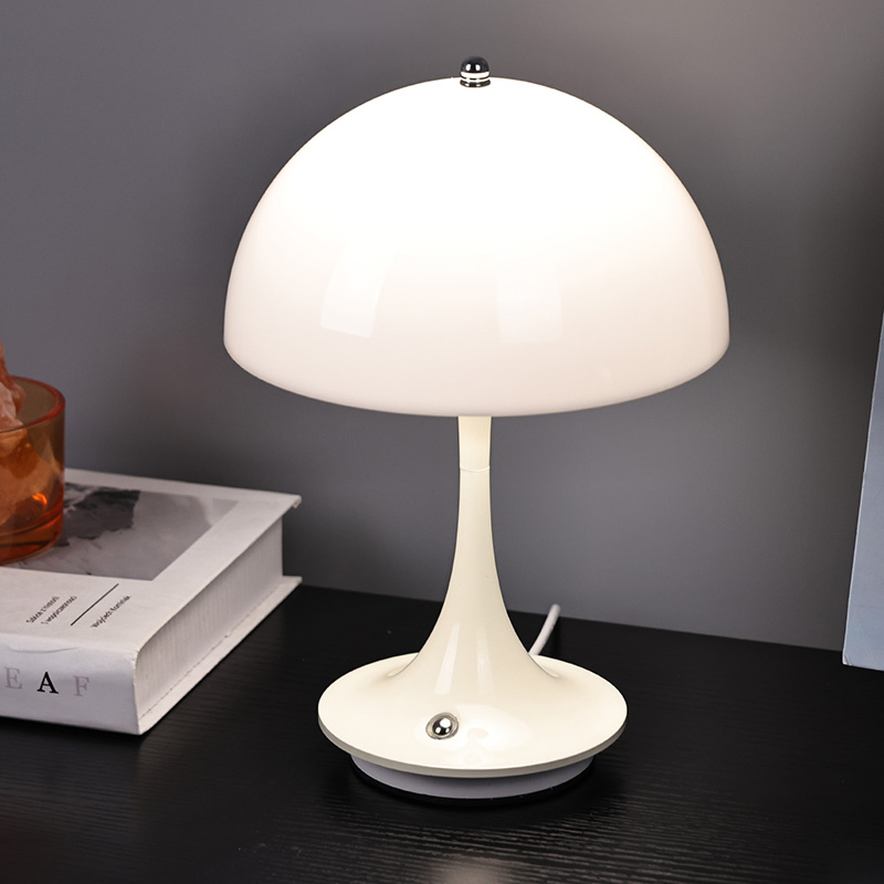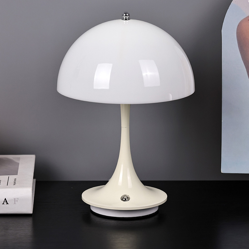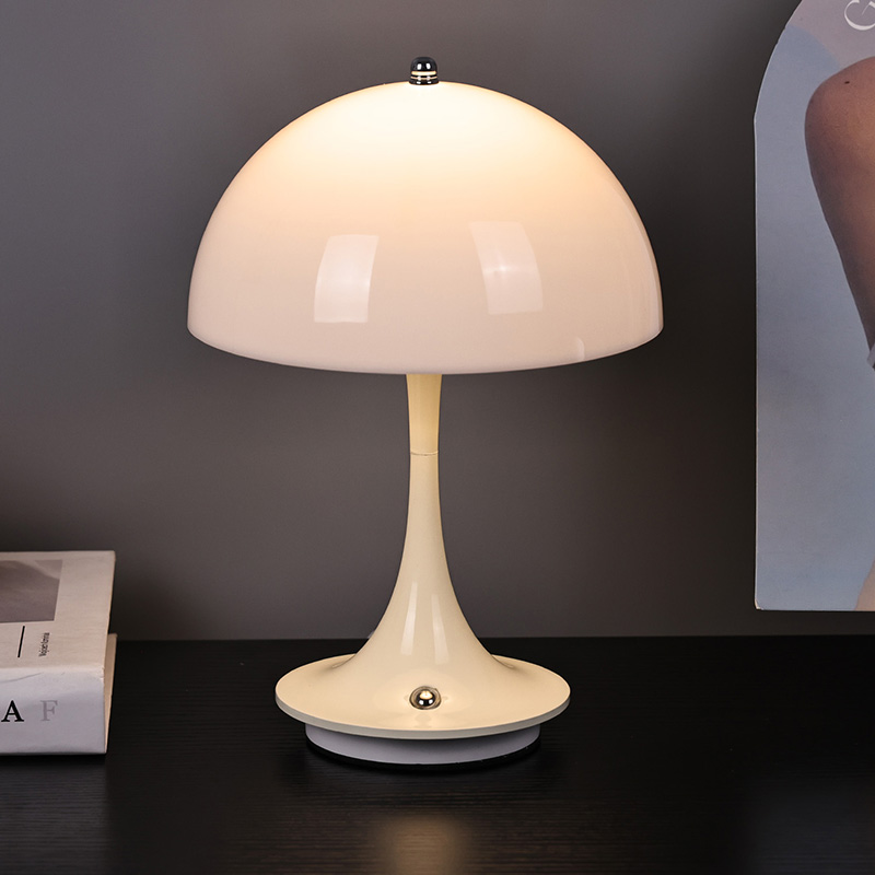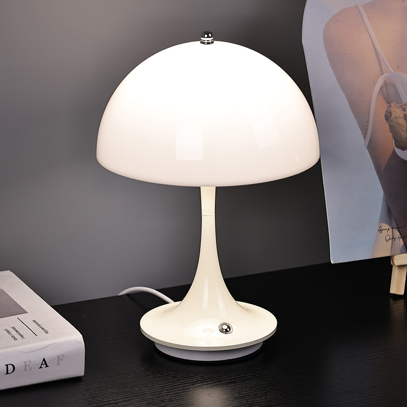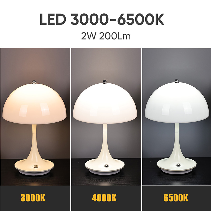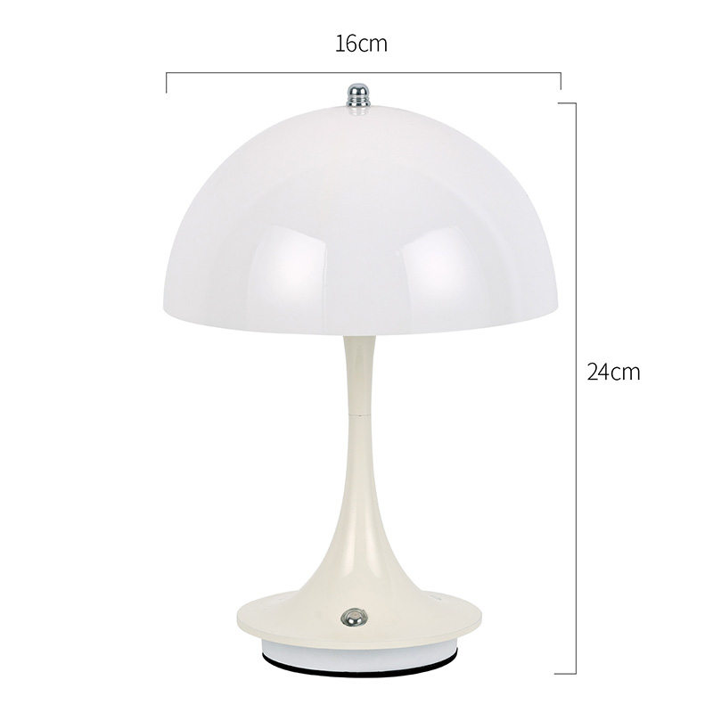 Søte Led hjemmelamper With Mushroom Shade har en metallsokkel og metalllyktestolpe, sammen med en plastlampeskjerm. Lampeskjermens overflate er vokset og glatt, med et veldig godt preg, som ligner en sopp