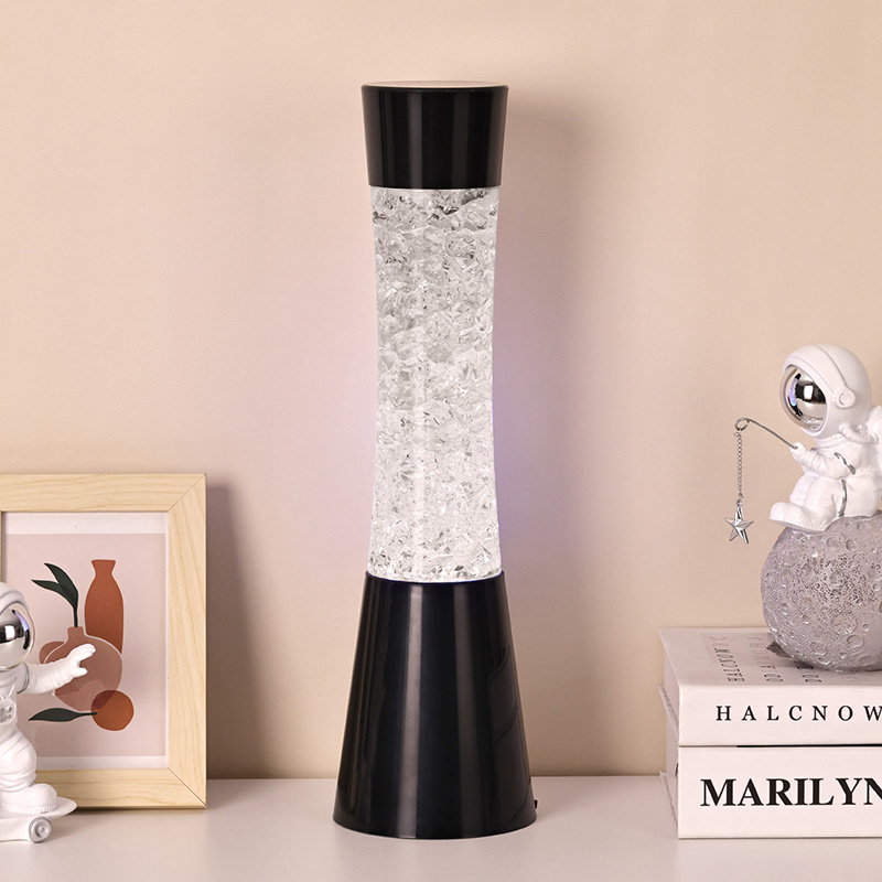 Et annet høydepunkt ved denne lille nattlampen er dens flytende og ICE-design inni. Væsken inneholder en stor mengde ICE, som skinner sterkt under belysning av lys, som om utallige stjerner blinker på nattehimmelen. Når væsken strømmer, vil ICE spre seg uregelmessig, og skape en drømmeaktig visuell effekt. Led ICE lavalampe med 3AAA batteri har også RGB fargebelysningsfunksjon. Gjennom avansert LED-teknologi kan lysarmaturer avgi mykt og jevnt lys, og fritt justere fargen på lyset etter ulike scener og behov. Du kan velge favorittfargen din eller få belysningsarmaturene til automatisk å endre farger for å skape en fargerik visuell fest.