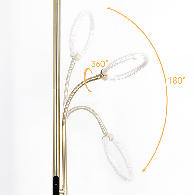Luxury Gold led gulvlampe for stue er utstyrt med avansert silikonrør 360 graders lysteknologi, som avgir mykt og jevnt lys, som effektivt lyser opp hele rommet. Silikonrør har god fleksibilitet og holdbarhet, og tåler ulike miljøforhold for å sikre stabilitet og sikkerhet