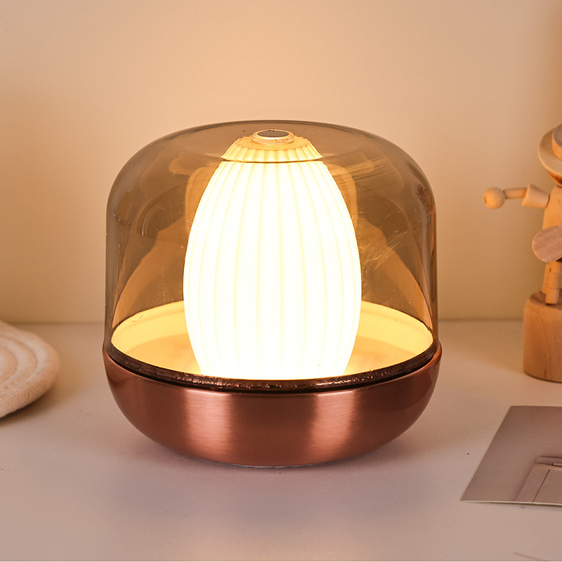 Designinspirasjonen til dette varme glødende nattlyset stammer fra blandingen av natur og arkitektonisk estetikk. Med sin avrundede og fyldige form, ligner den en omhyggelig utskåret ravgul edelsten. Plassert på et skrivebord eller bord, blir den uanstrengt et visuelt fokuspunkt. Det ytre laget har et deksel med høy gjennomsiktighet som ikke bare beskytter den interne lyskilden, men også skaper unike lys- og skyggelag gjennom brytning, og produserer en drømmeaktig visuell effekt.