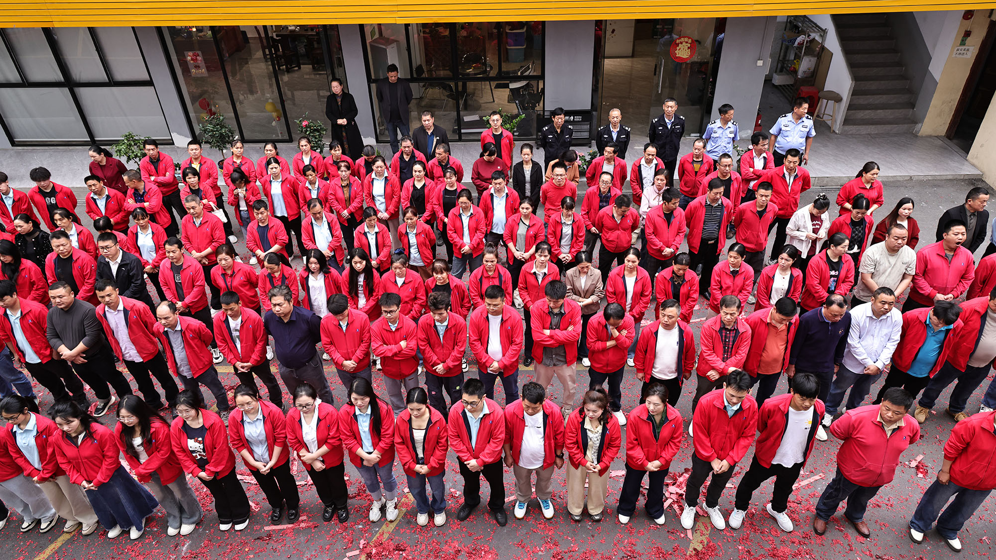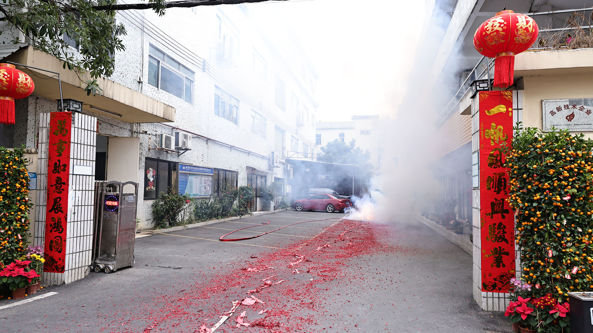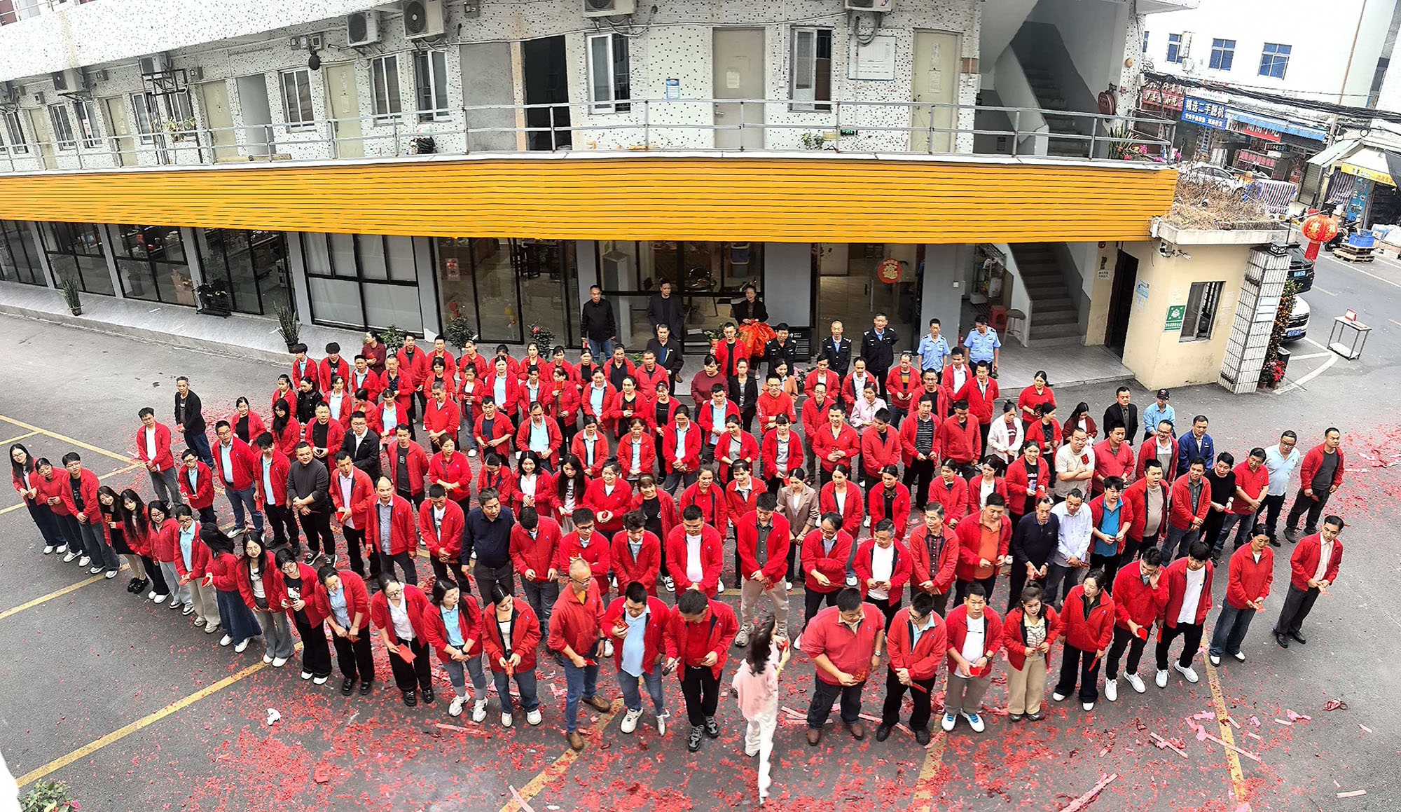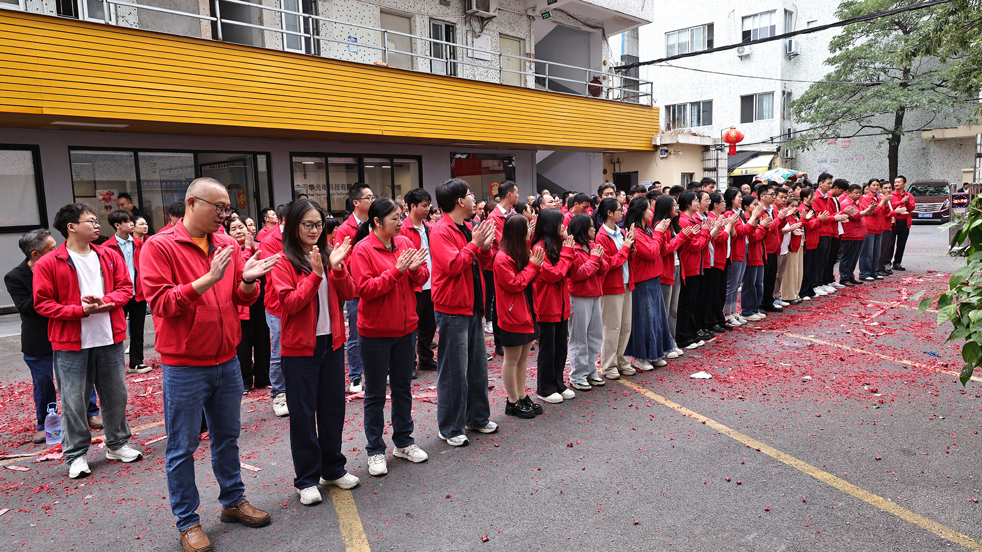 På den gunstige tiden om morgenen, akkompagnert av utbrudd av skarpe og hyggelige knalllyder, startet avsparksseremonien offisielt. Det øredøvende brølet fra fyrverkeri fjernet ikke bare den dvelende vinterkulden, men symboliserte også at selskapet ville være blomstrende og velstående på det nye året. De røde papirfragmentene som danset på himmelen var som blomster av gode tegn, og banet en storslått vei som fører til en strålende fremtid, noe som antydet at Tianhua Optoelectronics helt sikkert ville oppnå skyhøye ytelser og trives i 2026.