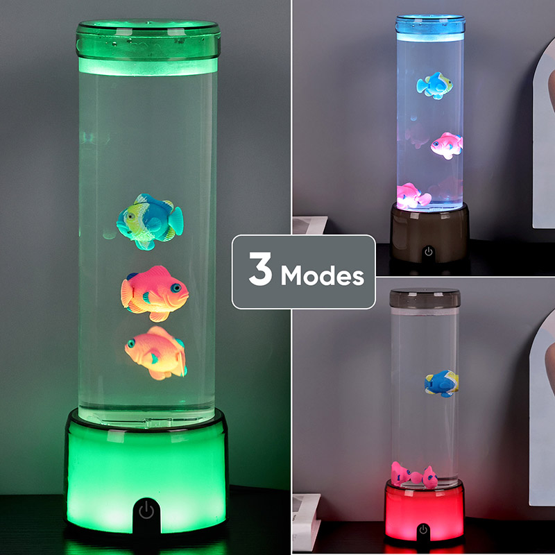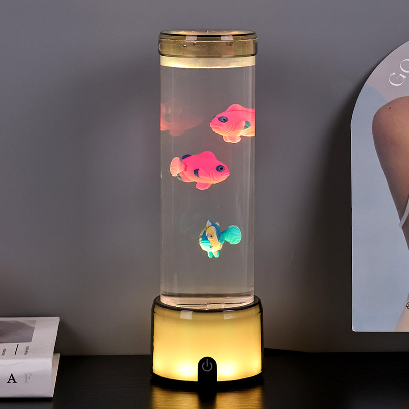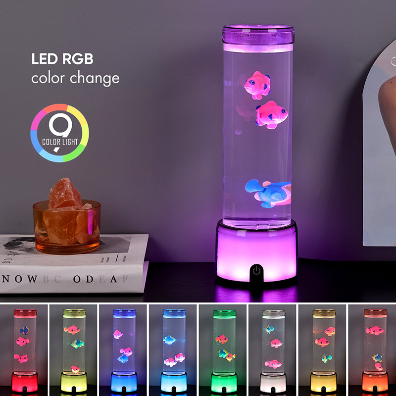 Fiskelampens sokkel er utstyrt med en RGB-fargeskiftende transparent base, som kan avgi lys i flere farger, noe som gjør at hele lampekroppen har en fargerik effekt. Farge etter at bryteren er slått på