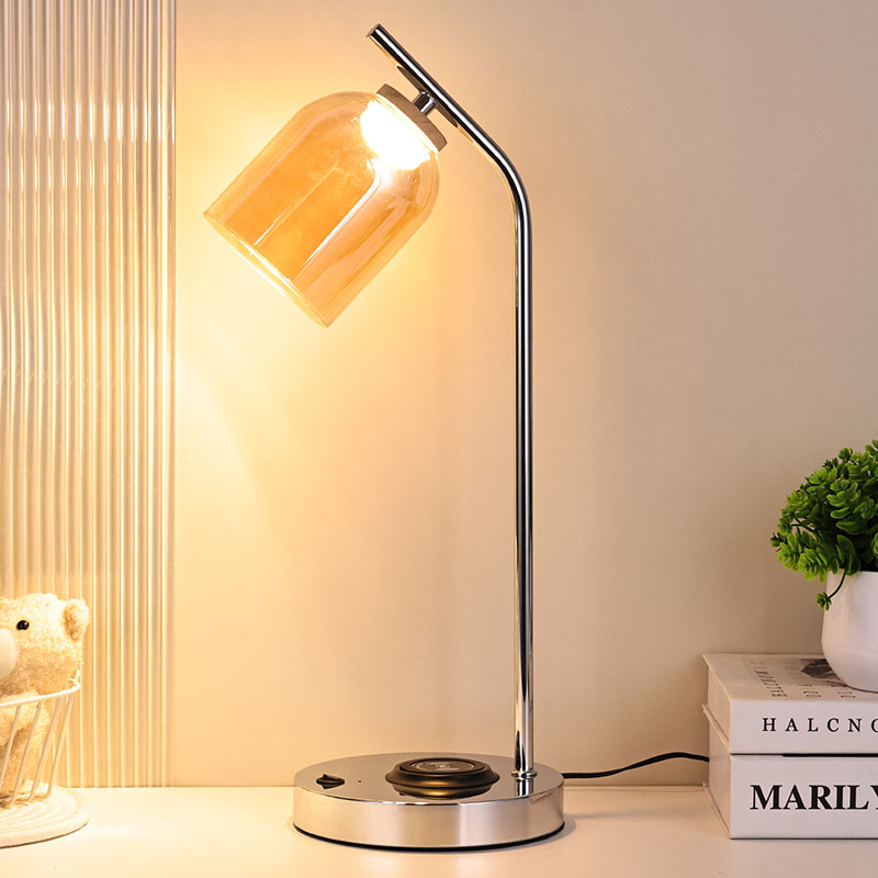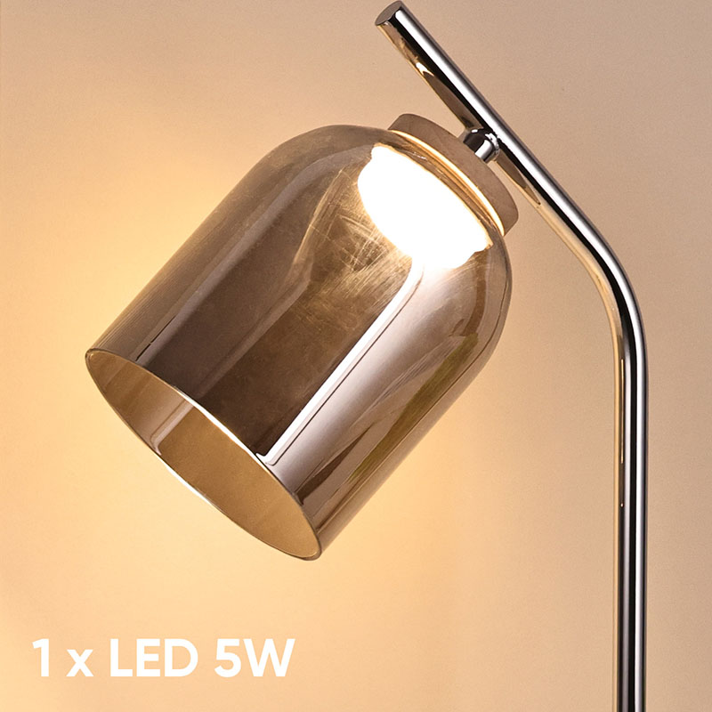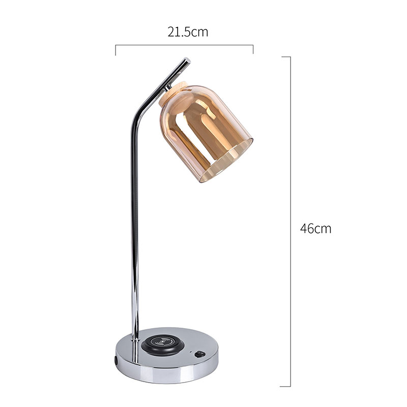 Krom base, røykfylt (rav) glassskjermInnovativ design, glassmateriale, high-end og elegant utseende, svært dekorativ skrivebordslampe designstil