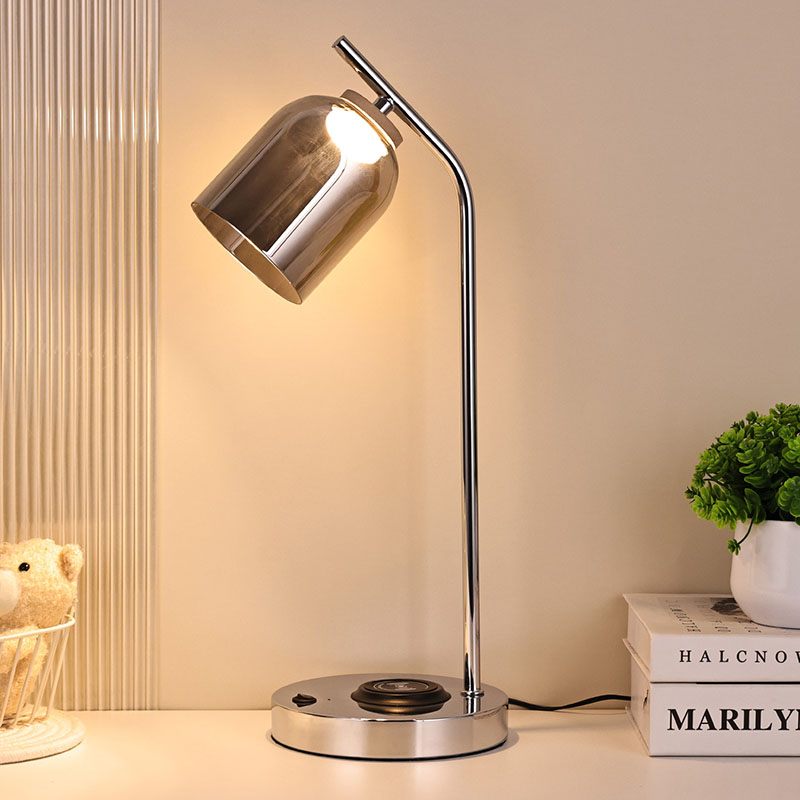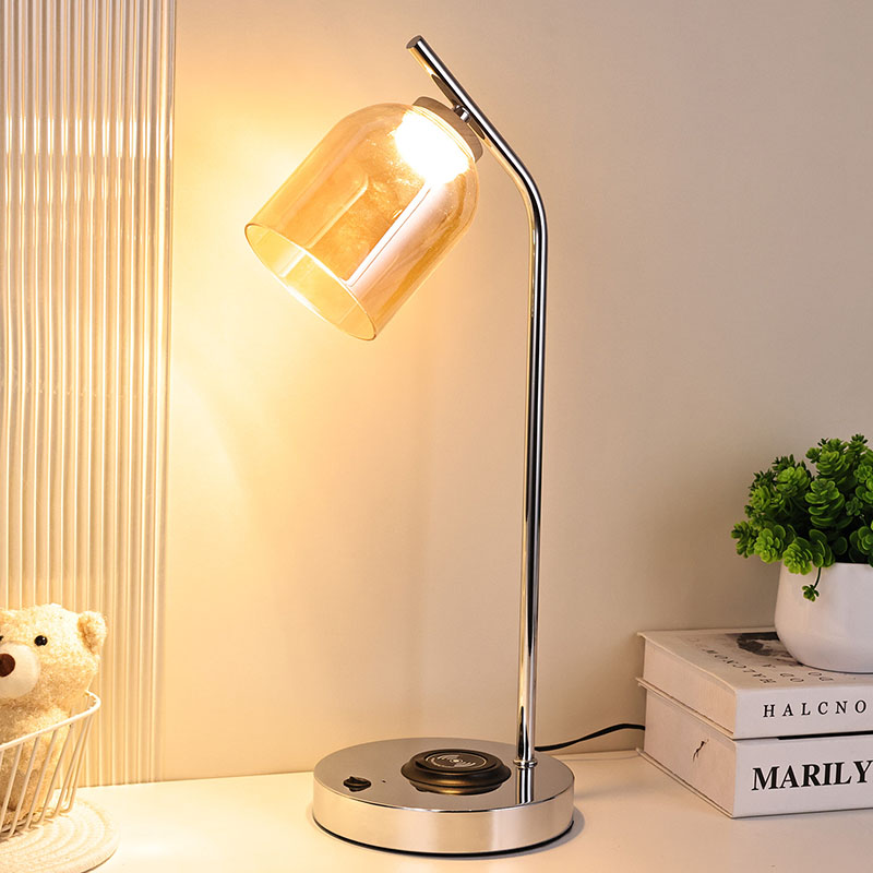 QI led skrivebordslampe med glassskjerm med metallslimfot og kropp