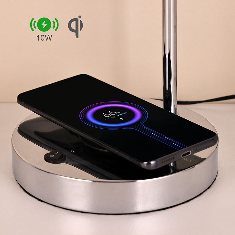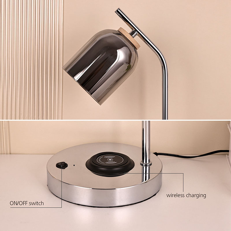 For enkelhets skyld er QI led skrivebordslampe med glassskjerm også utstyrt med en trådløs ladebase for mobiltelefoner i metall. Bare plasser den trådløse ladeaktiverte telefonen forsiktig på basen for rask lading, uten behov for kjedelige pluggingsoperasjoner. Trådløs ladeteknologi forbedrer ikke bare brukervennligheten, men unngår også problemet med rotete ledninger, noe som gjør skrivebordet ditt mer ryddig og vakkert. I tillegg har metallbasen god varmeavledningsytelse, noe som sikrer sikkerheten og påliteligheten til ladeprosessen